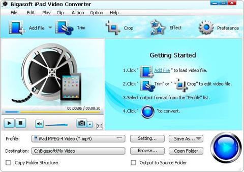 Free download the ideal DivX to iPad Converter - Bigasoft iPad Video Converter ( for Windows, for Mac), install and run it, the following interface will pop up.